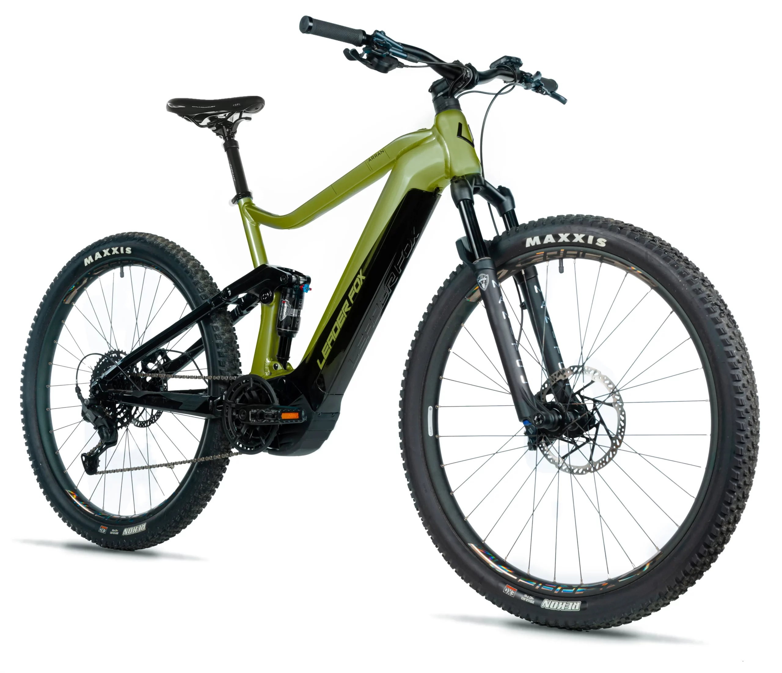 Horské celoodpružené elektrokolo Leader Fox ARRAN 27,5″ s hliníkovým rámem a sportovním designem je vybaveno odpruženou přední vidlicí a zadním tlumičem Manitou pro maximální pohodlí a kontrolu.