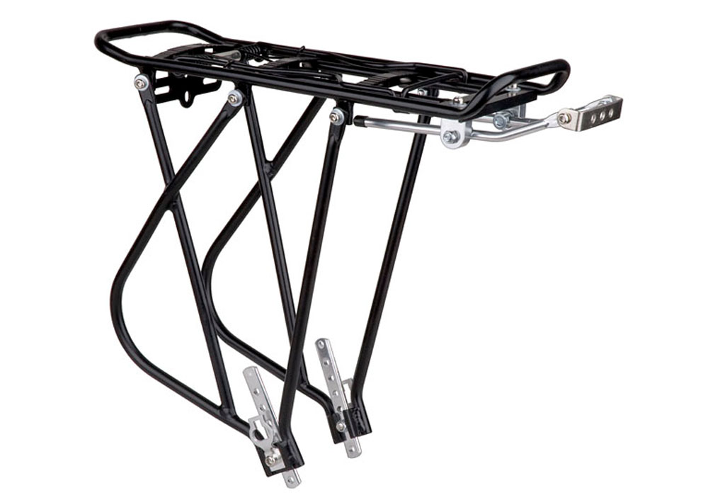 zadní universální nosič s klapákem ,26″-29″,masivní duté duralové trubičky 10mm , stavitelná výška,nosnost 25 kg, kloubový upínací systém 3D, držák na odrazku (blikačku), váha : 945 g,