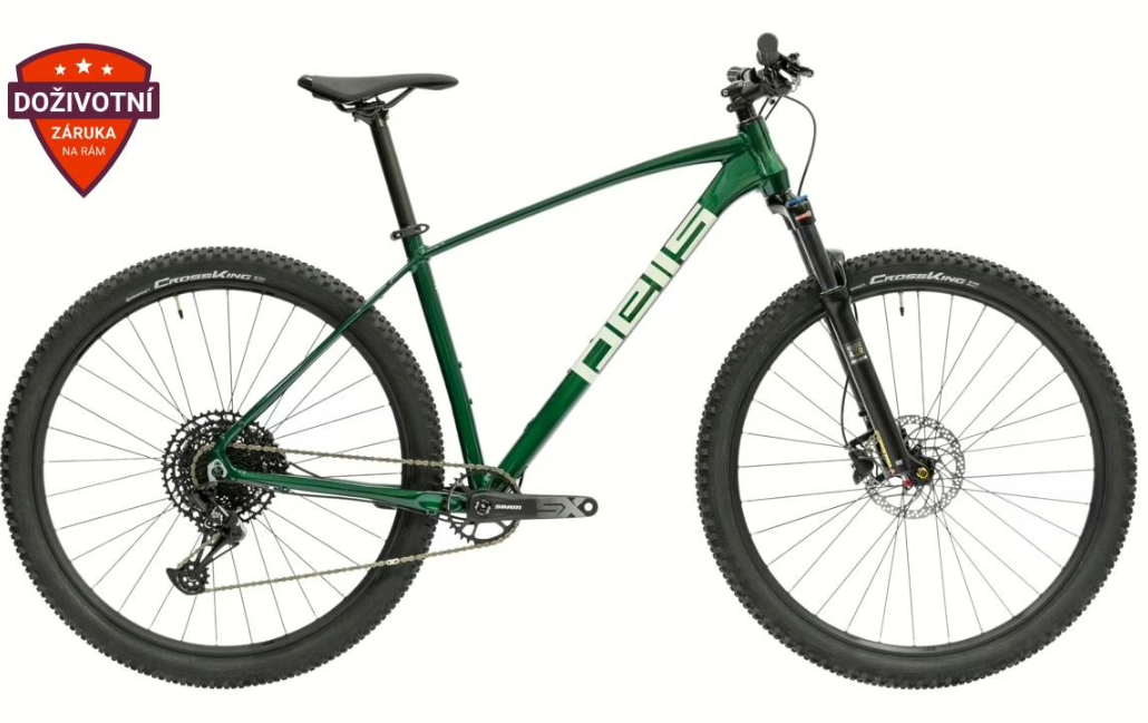 Nejklasičtější klasika horských kol Pells ve variantě s komponenty Sram. Razzer 1 Green Forest je dostupný MTB s širokou škálu využití – od kondiční jízdy přes rodinné výlety až po cesty do práce. Lehký hliníkový rám Pells Alloy je osazen vzduchovou vidlicí SR Suntour XCR32 Air 15Q se zdvihem 100 mm a pevnou osou, která skvěle tlumí nerovnosti terénu. O efektivní přenos síly se stará pohon Sram NX/SX Eagle 12s, spolehlivé brzdy Shimano BL-MT200 zajišťují bezpečnost a dokonale přilnavé pláště Continental Cross King 29/2,3 dodávají jistotu i v mírném terénu. Razzer 1 je zárukou výborných jízdních vlastností a spolehlivosti v každé situaci.